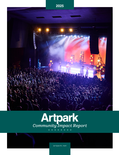 This reimagining of the relationship between art and audience proved critical to Artpark’s survival during the COVID-19 pandemic. While theater and performance venues across the country shuttered for a year or more, Artpark, as an outdoor venue with 150 acres of available space, doubled down on experimental performance and invited audiences to return and experience art in unconventional—and safe—settings. This period included outdoor, distanced “chamber” performances of John Luther Adams’ “One Thousand Birds” on the Mainstage Theater Terrace by Alarm Will Sound, or the “Art of Walking” - a promenade theater piece created to accommodate the social distancing, created in an international collaboration of Spain’s Itsaso Irribaren and German de la Riva with New York-based writer and director Carin Jean White; a number of creative residencies by Taylor Mac and the Holladay Brothers, the latter resulting in a innovative site-activated sonic experience designed by the Holladay Brothers and SoZo Artists with original sound tracks and stories provided by Rhyannon Giddens and Yo-Yo Ma, DJ Spooky, Kronos Quartet and local indigenous artists recorded by Michele-Elise Burnett. These digital walks delivered by a free app fused the natural and digital into a new way to experience the healing and sustaining nature. Further embracing the pandemic period’s need for adaptation, Artpark even converted several parking lots into temporary drive-in movie spaces, offering opportunities for all ages to safely gather and enjoy popular films. (Click here to download Artpark 2020: A Journal, for a firsthand account of Artpark during the first year of the COVID-19 pandemic, and Artpark 2021: A Journal, documenting Artpark's programming during the second year of the pandemic.)