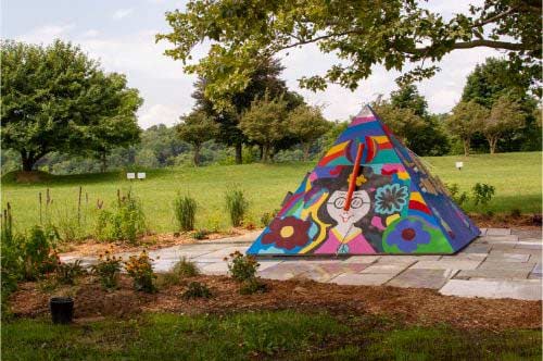 The Artpark Bridges Garden is a painted pyramid sculpture that incorporates different types of percussion instruments with a surrounding garden of greenery and flowers. The Garden was created in a collaborative effort of participants from the Artpark Bridges community engagement program, including People Inc., Empower, artist Brian Nacov and landscape designer Andrew Palinski.